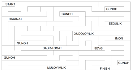 MULOHAZA QILGIN: Hikmatlar kitobining 14-bob, 12-oyatida shunday yozilgan: “Shunday yo‘l borki, insonga to‘g‘ri bo‘lib ko‘rinadi, ammo oxiri o‘limga olib boradi”. 1, 2 va 3 variantlar shunday oqibatlarga olib kelishi mumkinmi? Sen odatda qandaydir fikr yoki harakating to‘g‘ri yoki noto‘g‘ri ekanligi borasidagi qaroringni qanday qabul qilishing haqida eslab ko‘rgin. Endi esa yuqorida keltirilgan oyat haqida mulohaza yurit. Sen tutgan yo‘l qanday natijaga olib boradi?